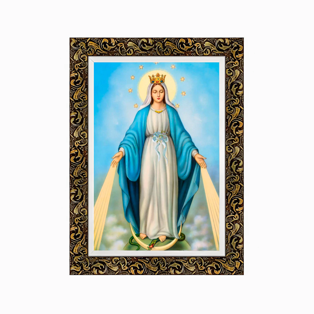 Moldura feita com madeira, todas as imagens estão em resoluções altíssimas e trabalhadas em vários tamanhos com ajustes de cores, pixel, com acabamento e resinado. Não desbota com o tempo. Tenha zelo com os seus itens de fé e devoção!
