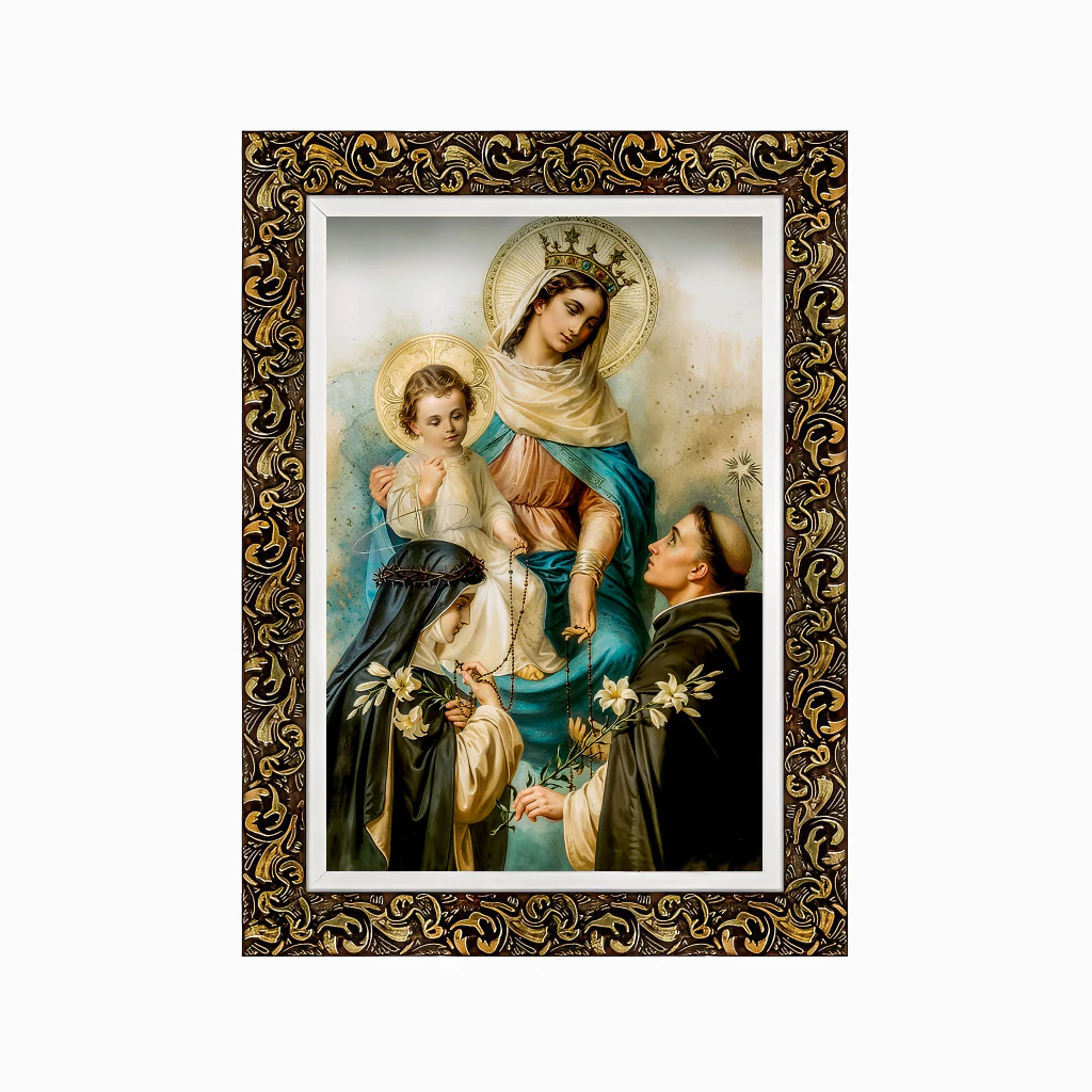 Moldura feita com madeira, todas as imagens estão em resoluções altíssimas e trabalhadas em vários tamanhos com ajustes de cores, pixel, com acabamento e resinado. Não desbota com o tempo. Tenha zelo com os seus itens de fé e devoção!