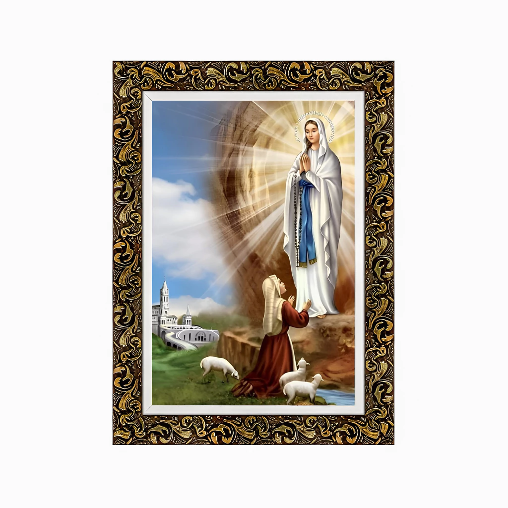 Moldura feita com madeira, todas as imagens estão em resoluções altíssimas e trabalhadas em vários tamanhos com ajustes de cores, pixel, com acabamento e resinado. Não desbota com o tempo. Tenha zelo com os seus itens de fé e devoção!