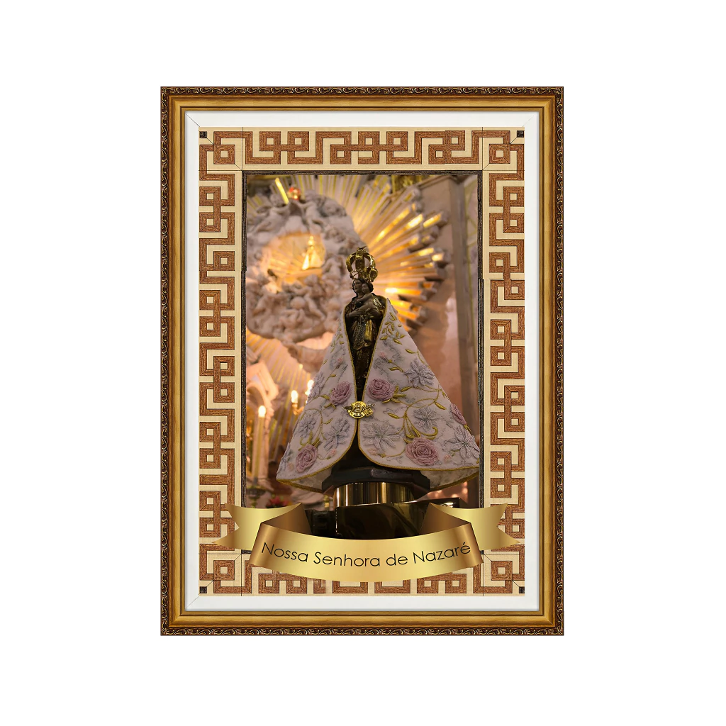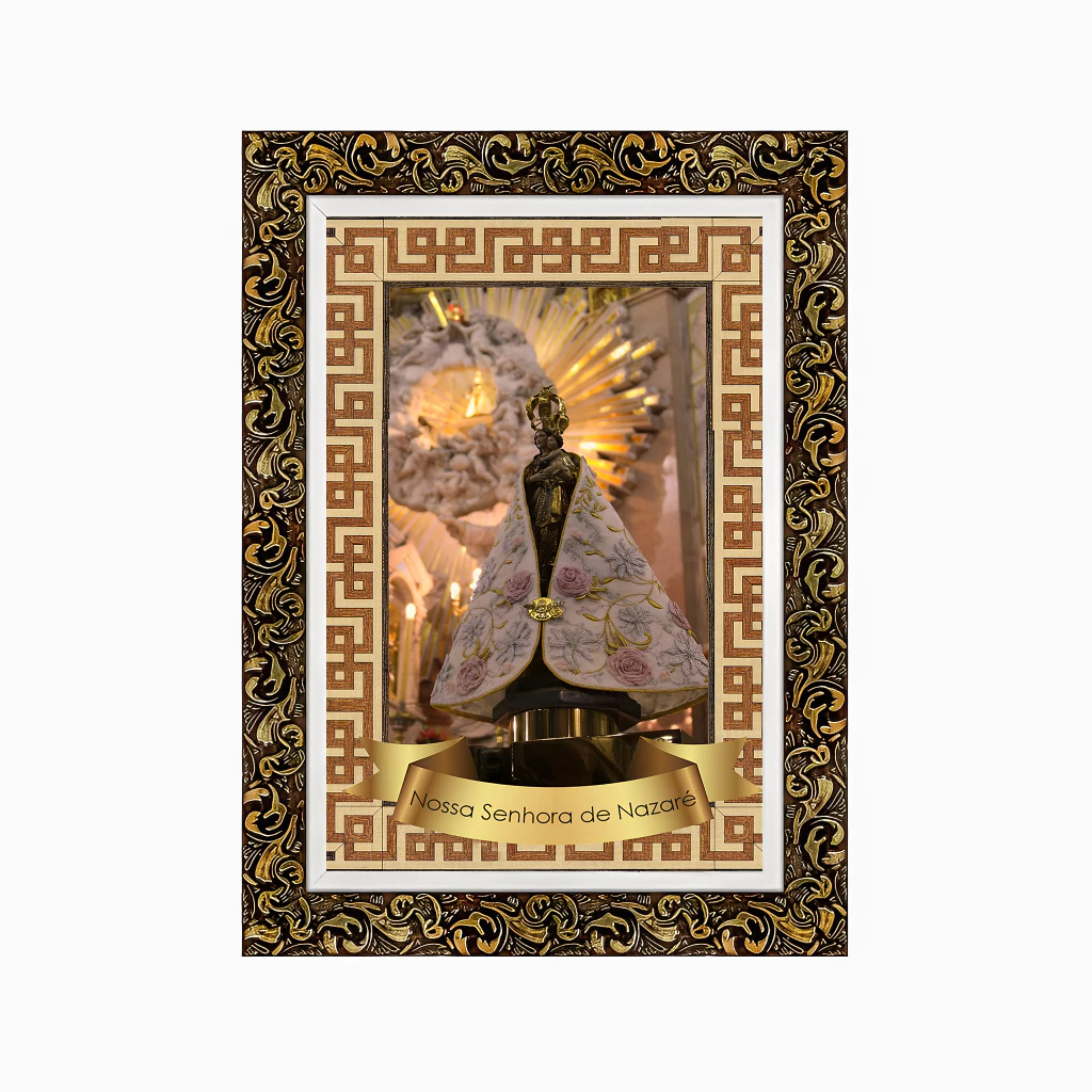 Moldura feita com madeira, todas as imagens estão em resoluções altíssimas e trabalhadas em vários tamanhos com ajustes de cores, pixel, com acabamento e resinado. Não desbota com o tempo. Tenha zelo com os seus itens de fé e devoção!