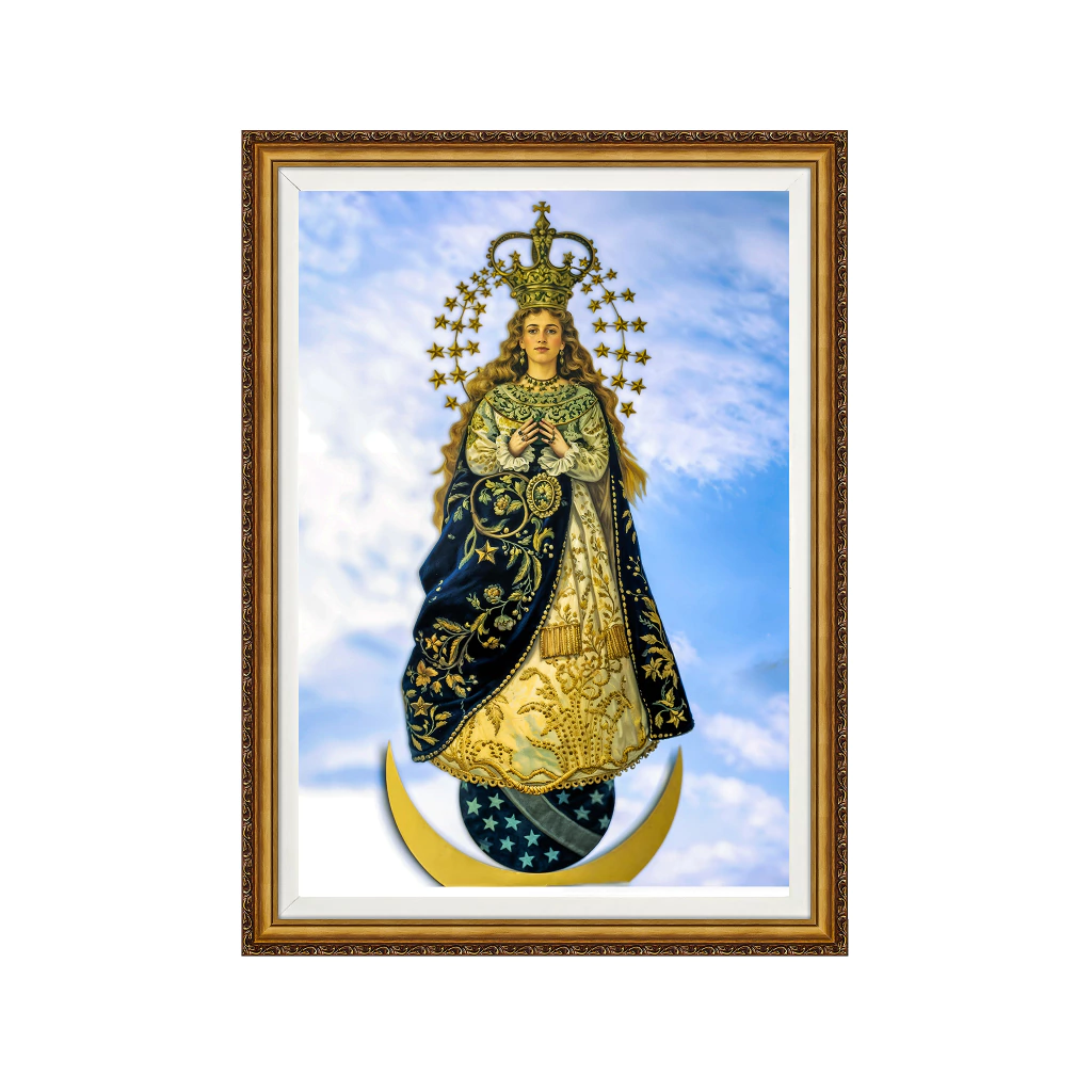Moldura feita com madeira, todas as imagens estão em resoluções altíssimas e trabalhadas em vários tamanhos com ajustes de cores, pixel, com acabamento e resinado. Não desbota com o tempo. Tenha zelo com os seus itens de fé e devoção!