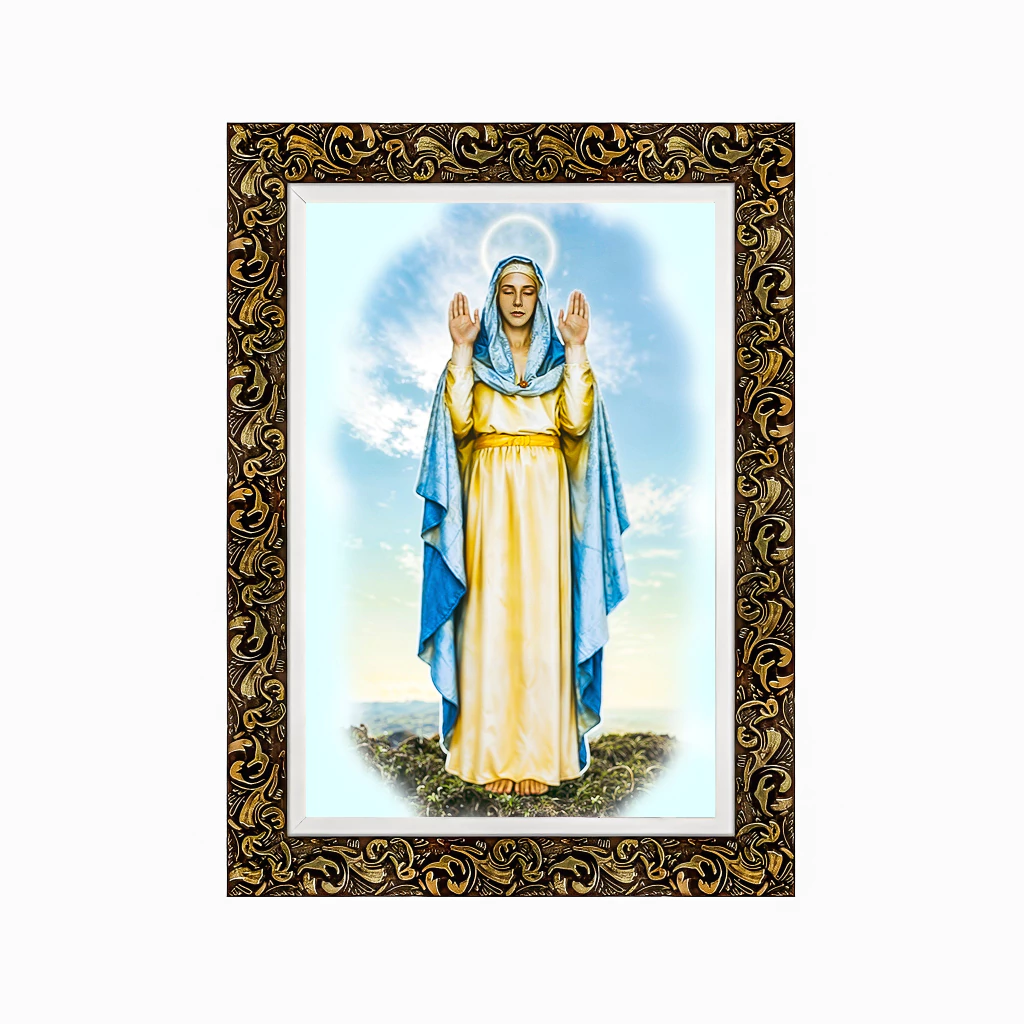 Moldura feita com madeira, todas as imagens estão em resoluções altíssimas e trabalhadas em vários tamanhos com ajustes de cores, pixel, com acabamento e resinado. Não desbota com o tempo. Tenha zelo com os seus itens de fé e devoção!